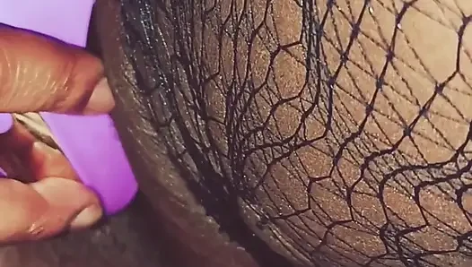 Geile reife schwarze Schlampe nimmt es in ihre nasse Muschi